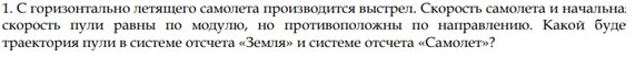 Относительно Земли - вертикальная прямая, относительно самолёта- дуга, направленная против его движения