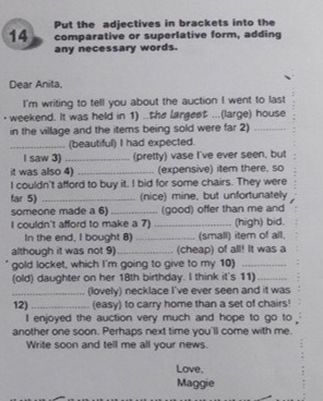 2 more beautiful 3 the prettiest 4 the most expensive 5 nicer 6 better 7 higher 8 the smallest 9 the cheapest 10 oldest 11 the loveliest 12 easier