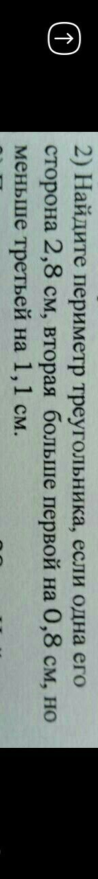 Если одна сторона равна 2,8 см, значит вторая 2,8+0,8., а третья (2,8+0,8)+1,1