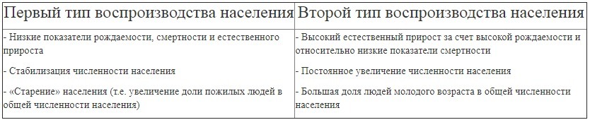 4. Для каких стран характерен первый тип воспроизводства населения (см. табл.)