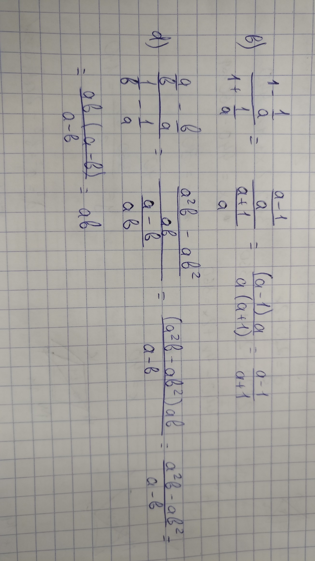 б) 1 - 1а : 1 + 1а = а-1а : а+1 а= а * а а+1 = а-1 а+1