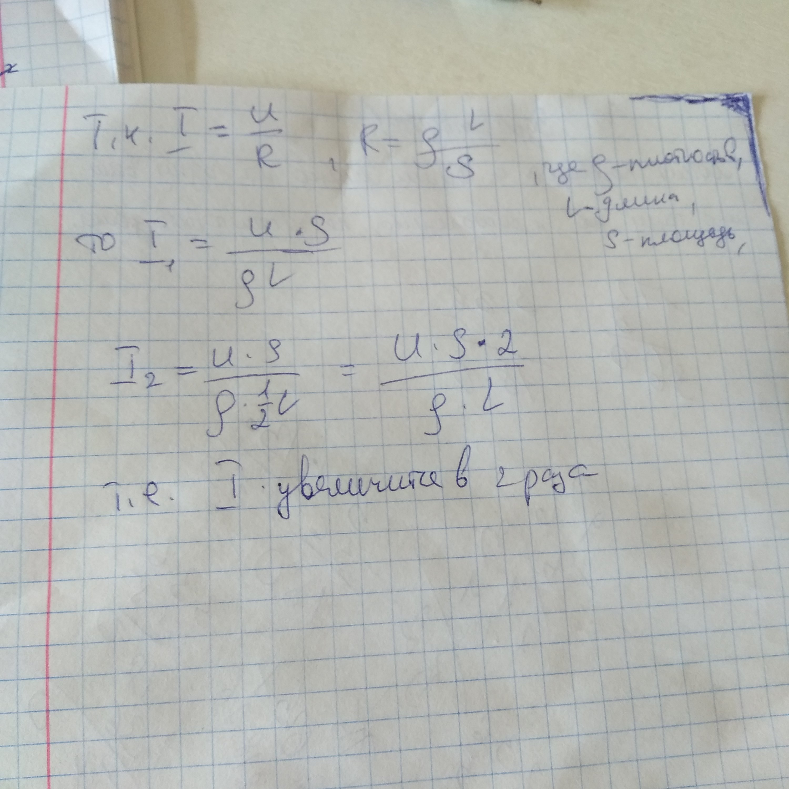Проводник, присоедененный к источнику постоянного напряжения укоротили в 2 раза. Как изменится сила тока?