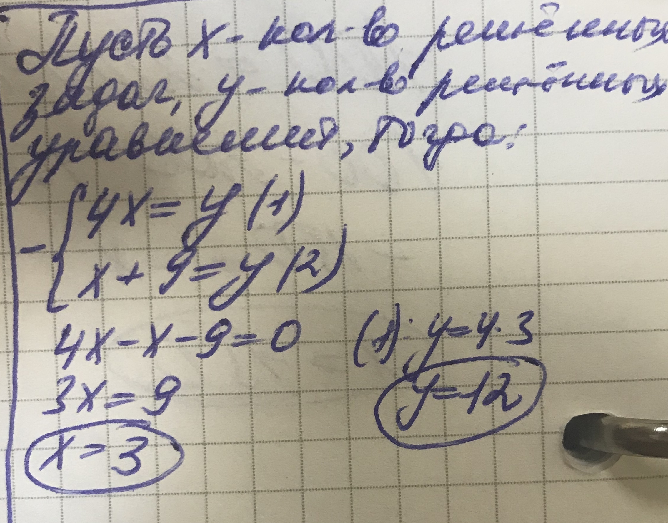 Учащийся 5 класса на уроке математики решил уравнений в 4 раза или на 9 больше , чем задач. Сколько задач решил пятиклассник?