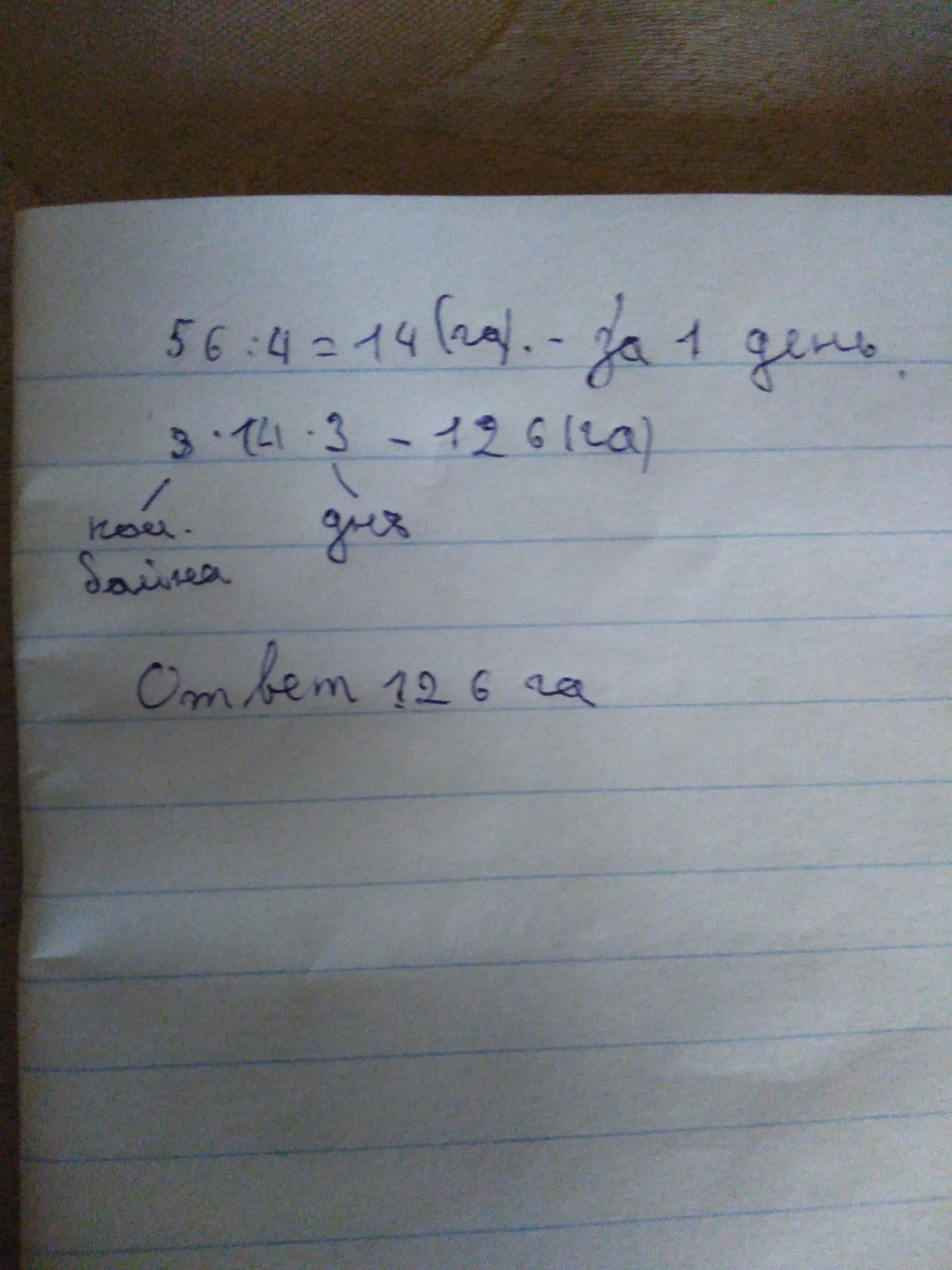 4 комбайна за один день собрали урожай с 56 гектаров Земли с гектара земли собирать урожай три комбайна за 3 дня