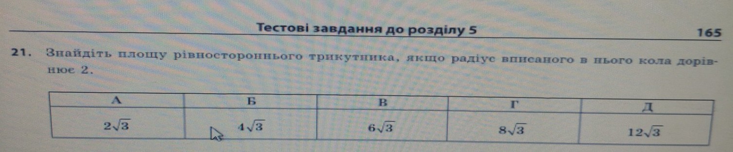 Відповідь: Д - 12√3.