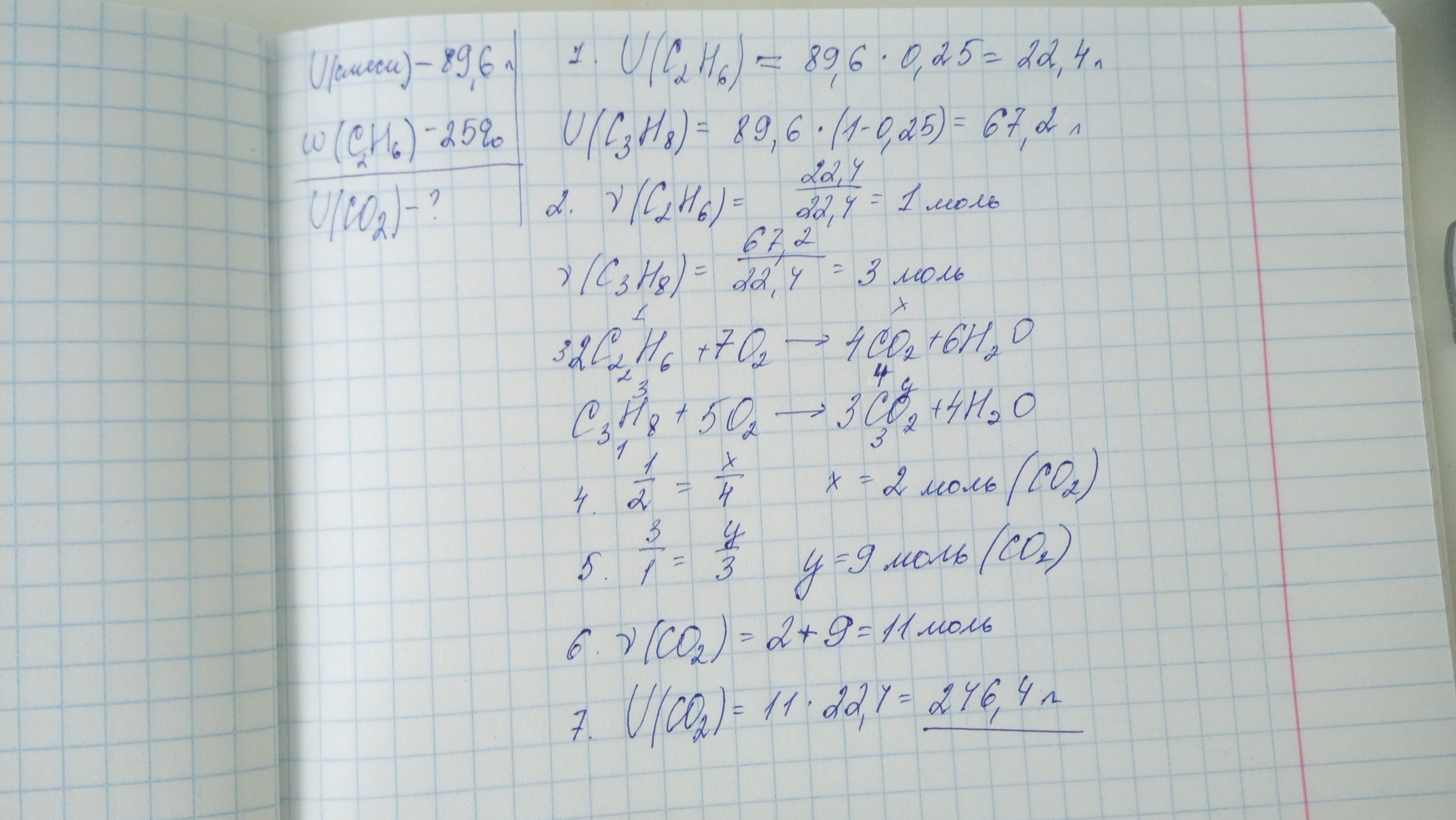 Суміш етану з пропаном об'ємом 89,6 л з масовою часткою етану 0,25, повністю спалили в атмосфері кисню. Який об'єм карбон 4 оксиду утворився ?