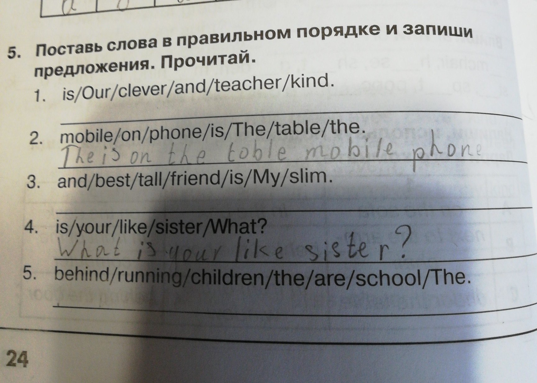 5. 1) Our teacher is kind and clever
