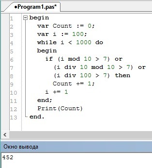 Найти количество трехзначных чисел в котором хот одна цифра больше 7.