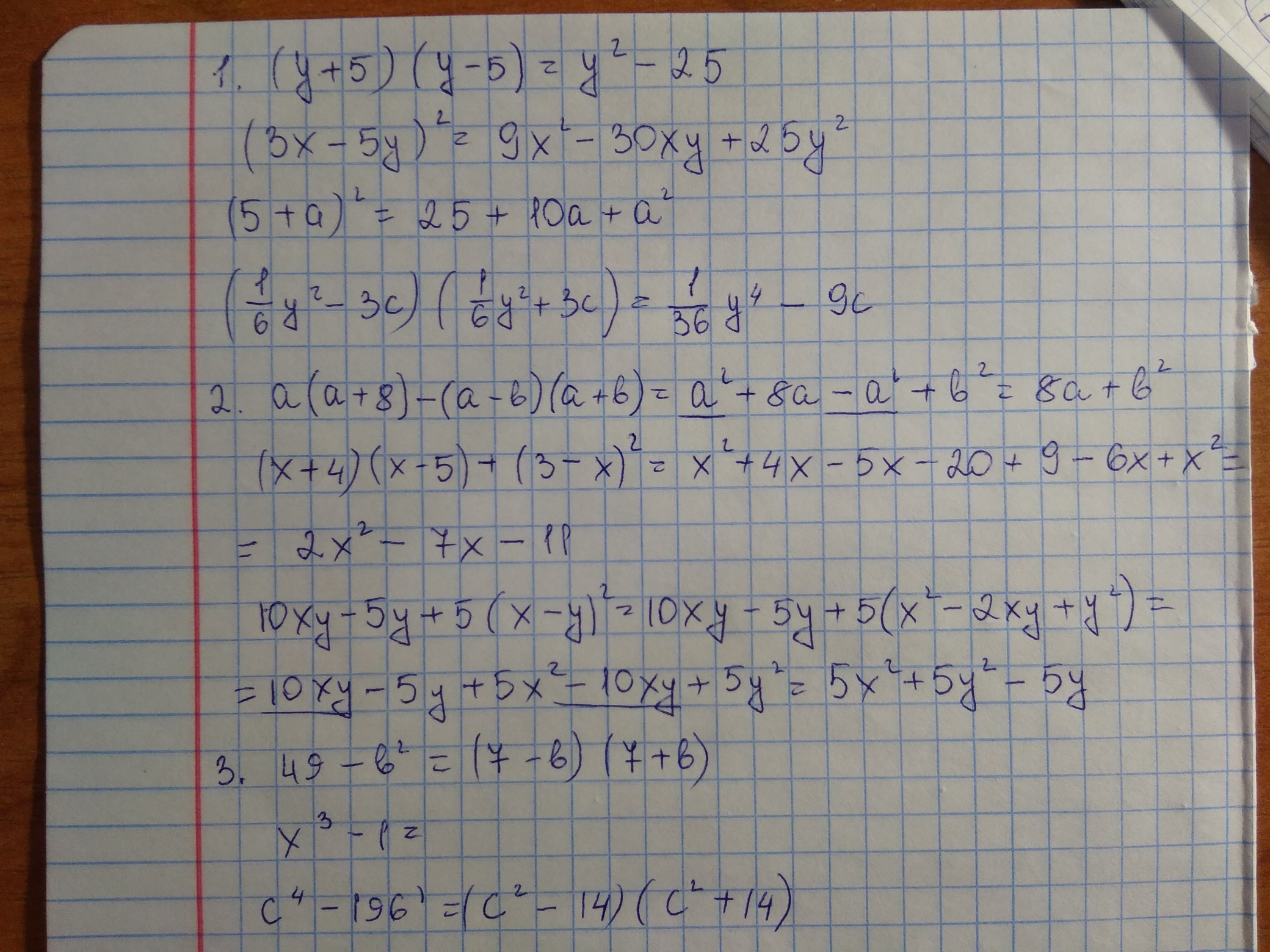 А) (x+y+c)(x-y+c)=(x^2-(y+c)^2)=x^2-y^2-c^2