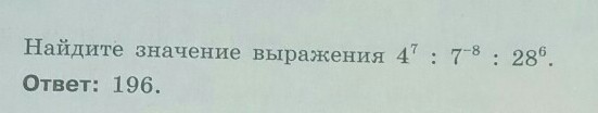 помогите мне кажется там не верно. у меня в итоге получилось 4^1*7^14 и как из этого получить 196