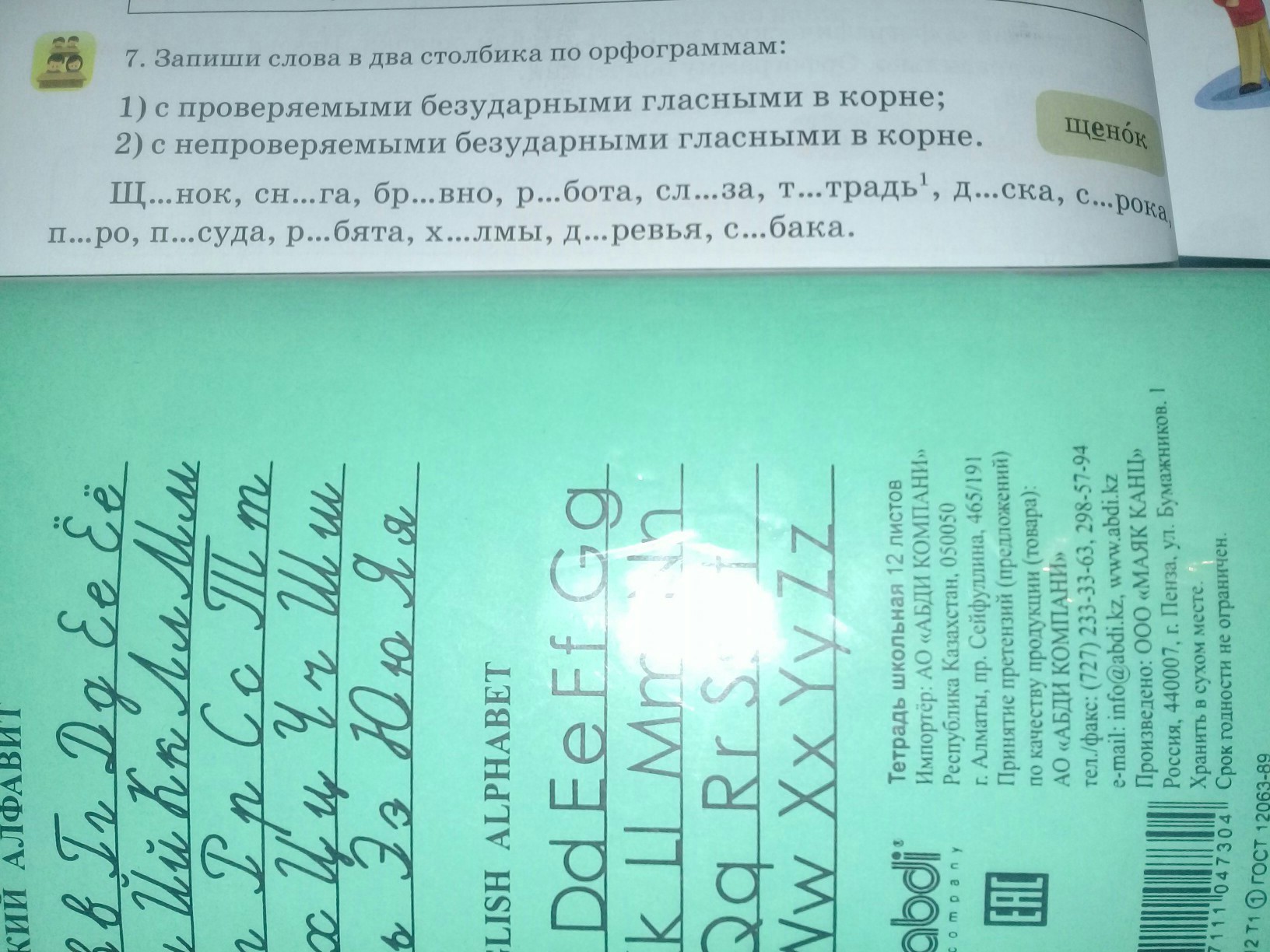 щенок,снега,бревно,работа,слеза,тетрадь,доска,сорока,перо,посуда,ребята,холмы,деревья,собака