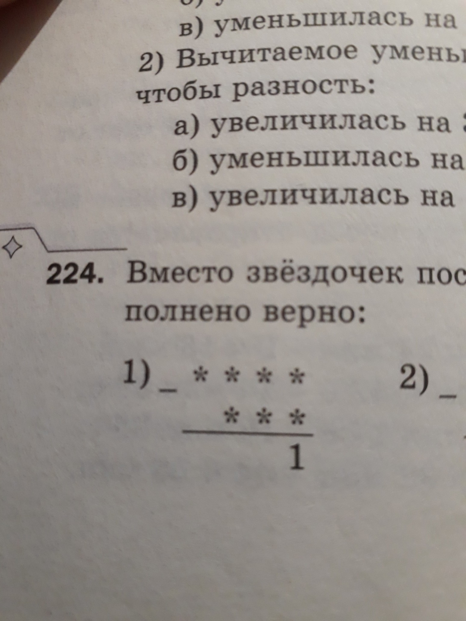 в место звездочек поставьте цифры так, чтобы вычитание было выполнено верно . пример (1) 4значное число звездочки , минус , 3 значное число звездочки, = 1 . Пример в столбик !