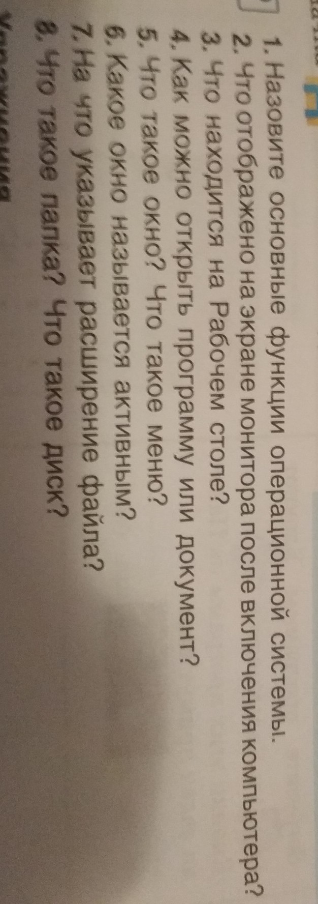 3)ярлыки, папки, окна, свойства системы, корзина.компьютер