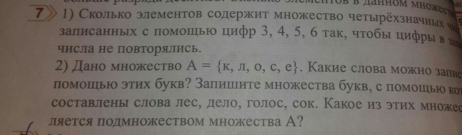 2) С помощью букв А={к, л, о, с, е} можно записать: колос, лес, кол, сок, скол, село, осел, колесо, сокол