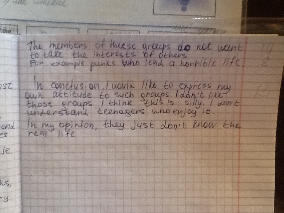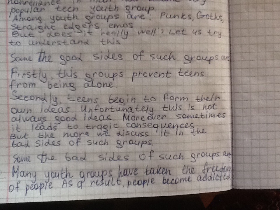 Фраза "But the more we discuss it in the bad sides of such groups". Она с ошибкой. Я бы написала так: "But the more problems of being in such groups we'll discuss in the next paragraph".
