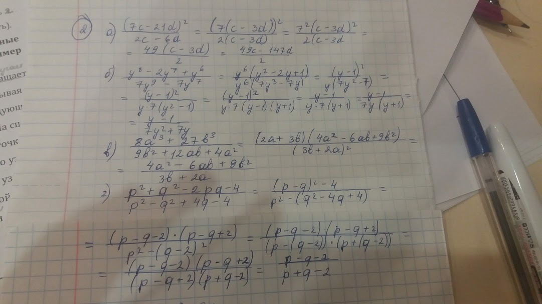 (y⁸ -2y⁷+ y⁶) / (7y⁹ - 7y⁷) =y⁶(y² -2y+ 1) / 7y⁷(y²- 1) =y⁶(y -1)²/ y⁷(y- 1) (y+1) =(y -1)/7y(y+1). ---------