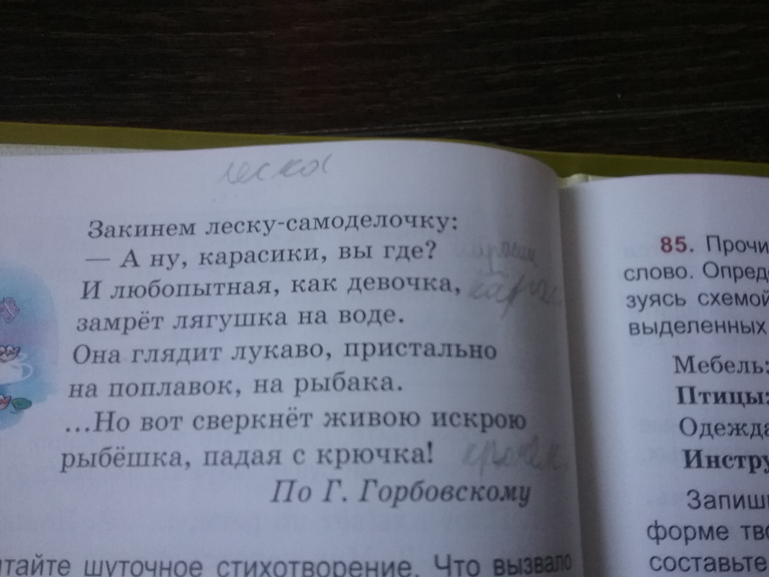 1 скл. - тарелочка, уха, леска, самоделка, девочка, лягушка, вода, искра, рыбешка