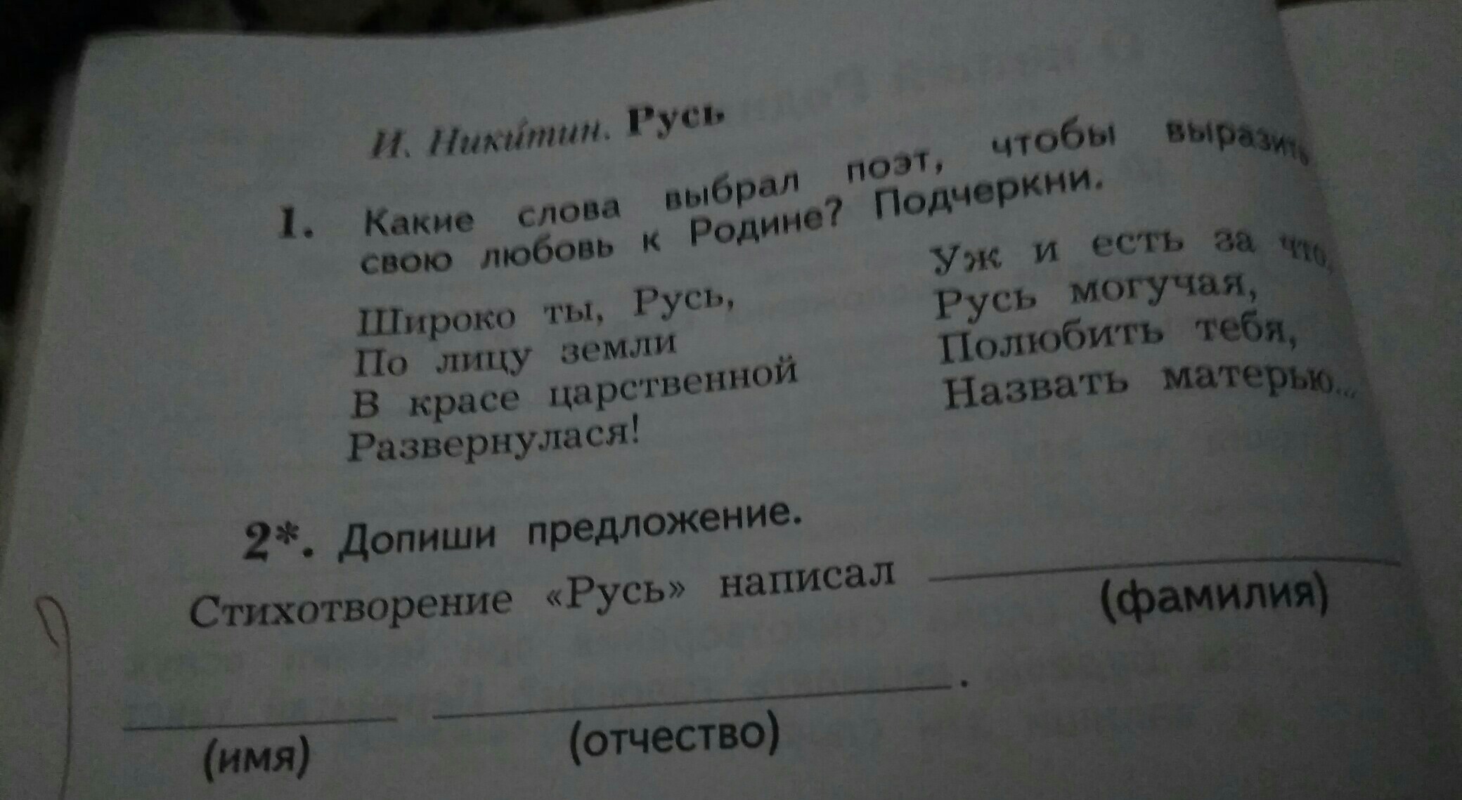 1.в красе царственной развернулася! Русь могучая. Полюбит тебя, назвать матерью.