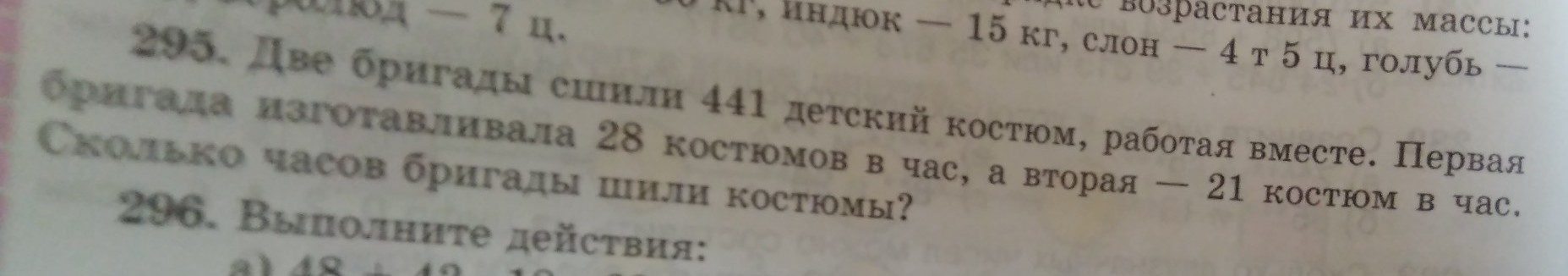 441:49=9-часов 2 бригады шили 441 костюмов