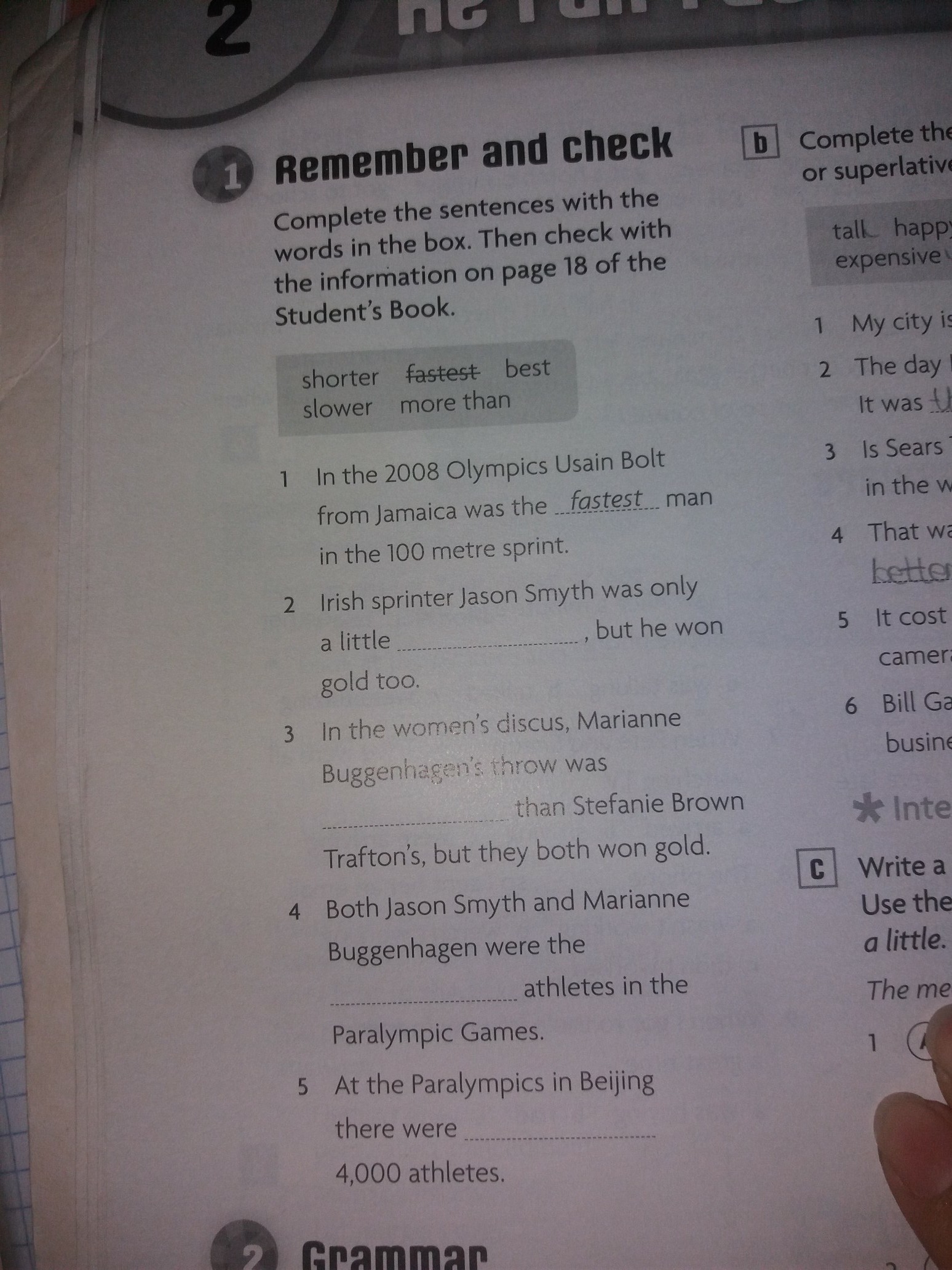 Complete the sentences with the words in the box. Then check with the information on page 18 of the Students Books.