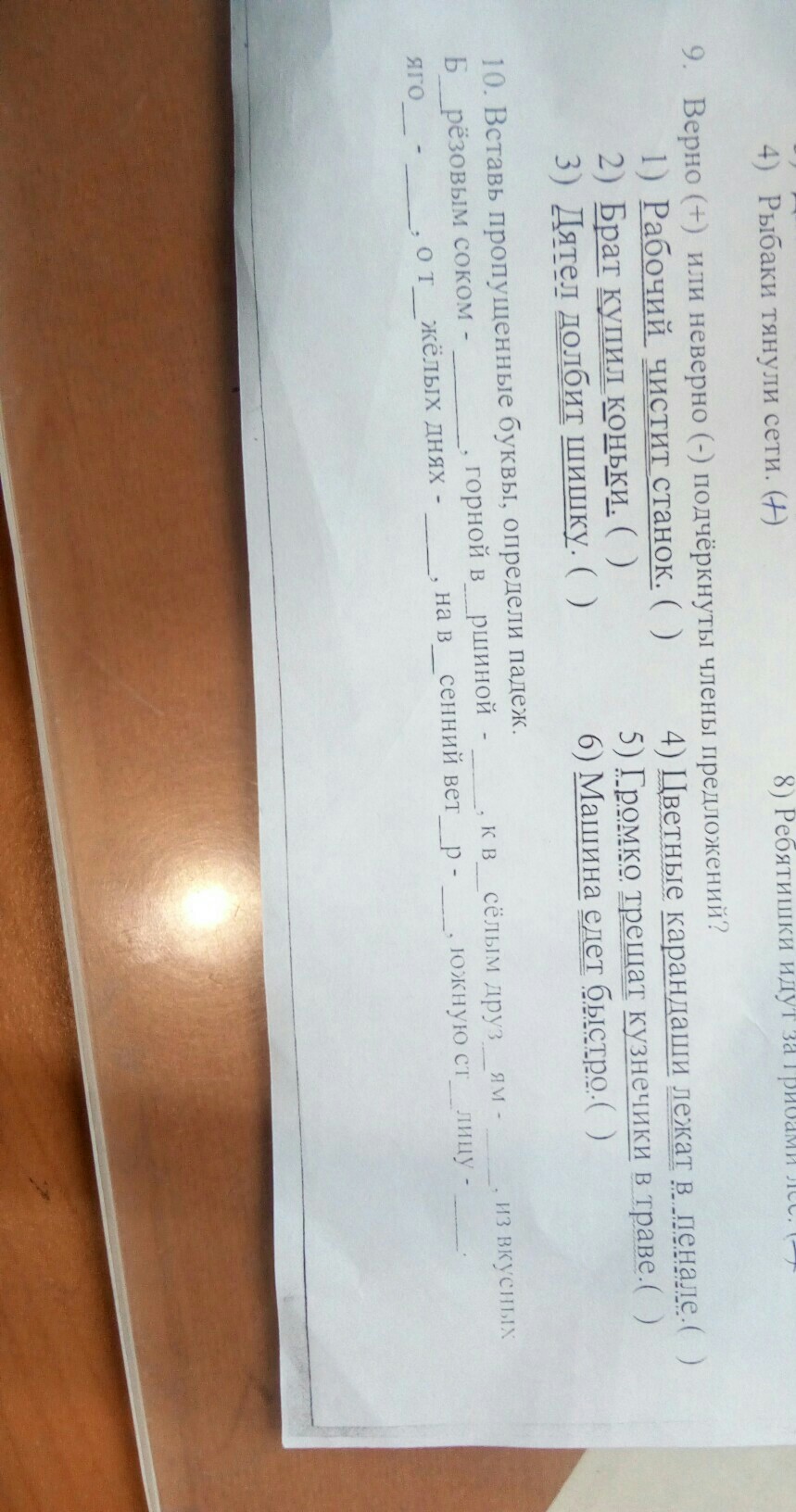 10. Берёзовым соком(Тв.п.), горной вершиной(тв.п.), к весёлым друзьям( д.п.),