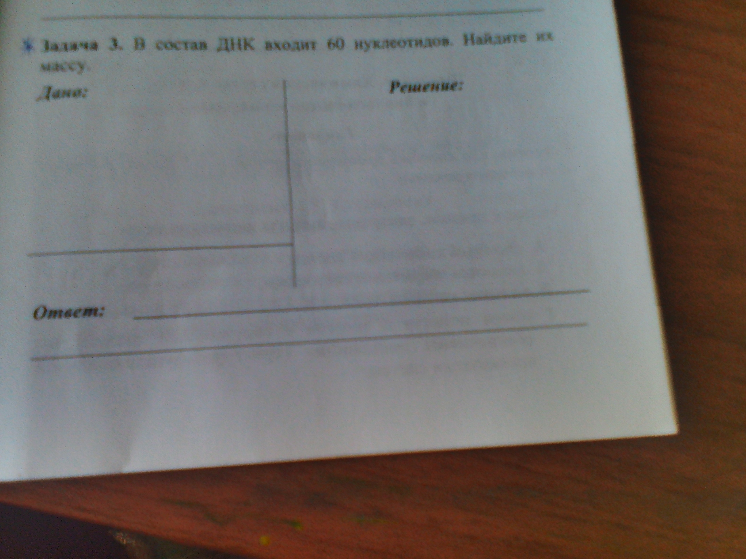 Нуклеотидов в молекуле ДНК содержится 4 вида, их молекулярная масса различна, но принято, что средняя масса 1 нуклеотида равна 345 а.е.м. (атомных единиц массы)