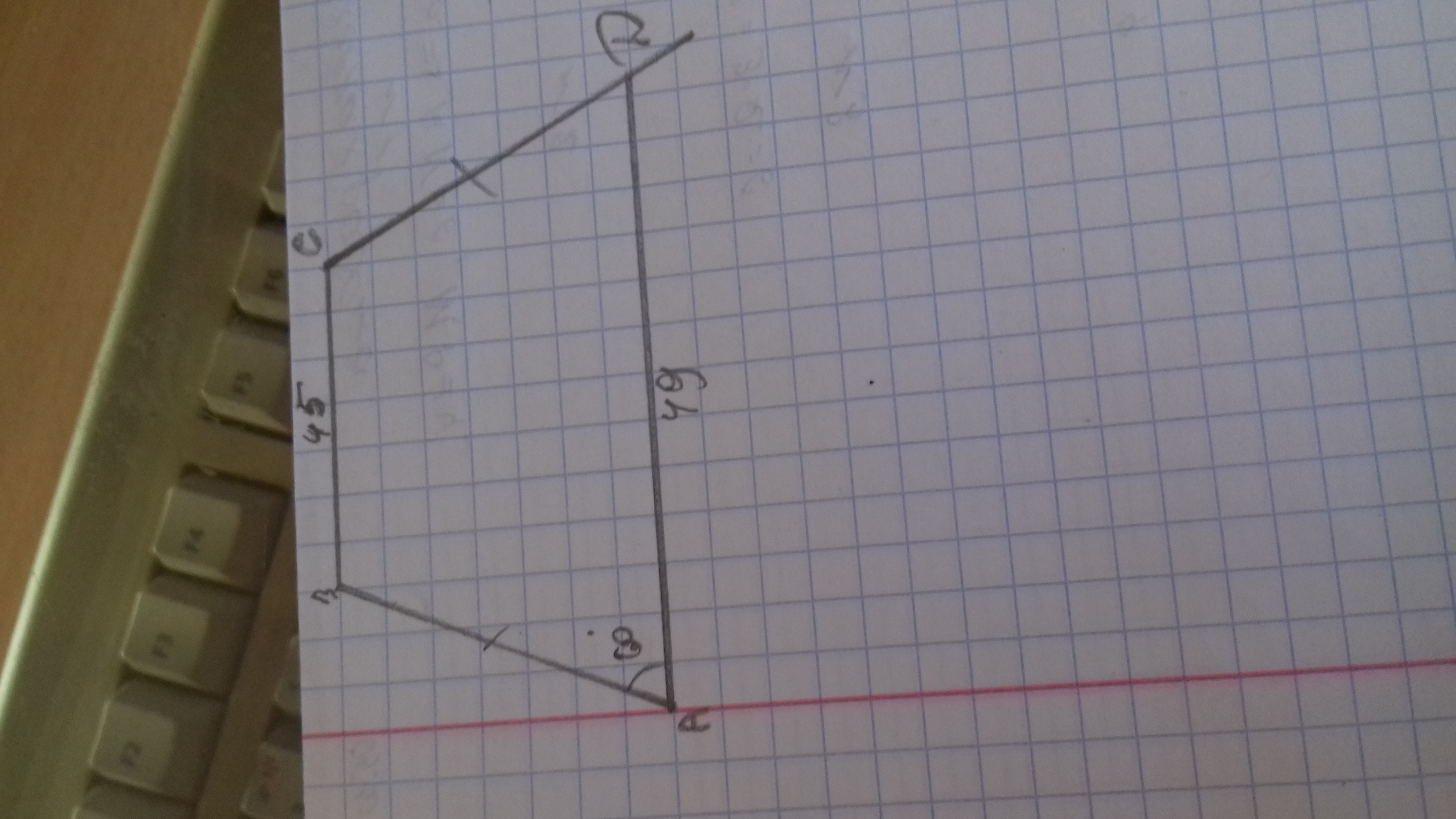 Дана трапеция ABCD сторона а д 49 градусов сторона BC 45 градусов сторона BC равна стороне CD угол А 60 градусов. Помогите пожалуйста