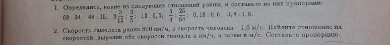 скорость самолета равна 800 км/ч, а скорость человека 1,6 м/с. Найдите отношение их скоростей, выразив обе скорости сначала с км/ч а потом в м/с. составьте пропорции