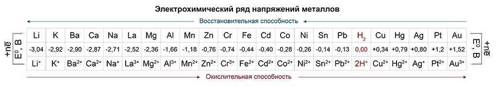 Если металл контактной пары разрушается, значит на нем происходит процесс окисления и значит он будет выступать в роли анода. Это металл с более отрицательным электродным потенциалом. Зная это и пользуясь электрохимическим рядом напряжений металлов (см. рис.), можно указать какой металл разрушается, а какой способствует коррозии