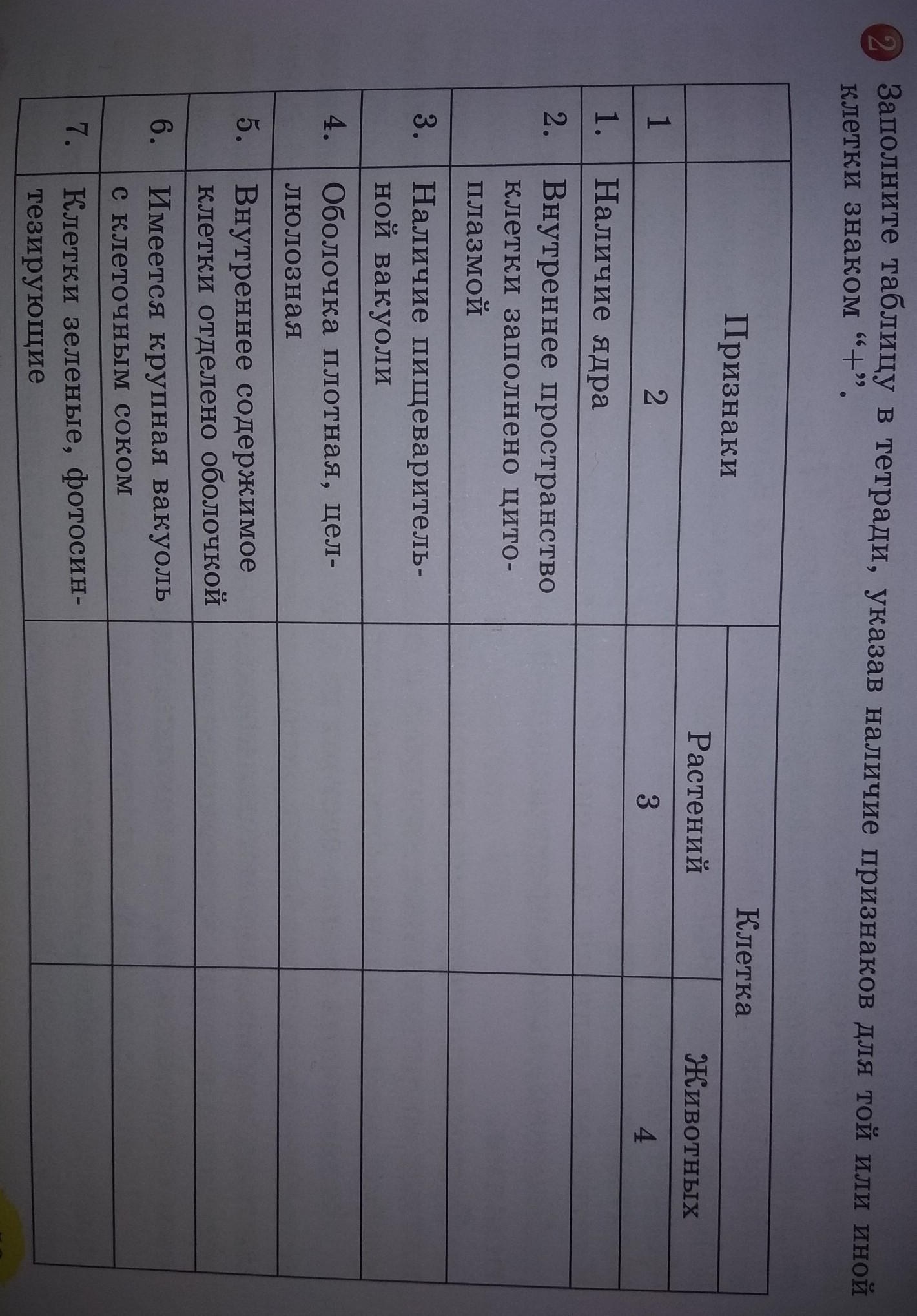 Запроните таблицу в тетради, указав наличие признаков для той или иной клетки знаком "+".