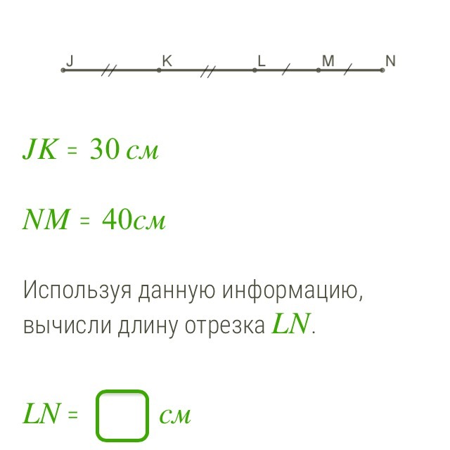LN= NM+ML.Так как NM=ML=40,то LN=40+40=80