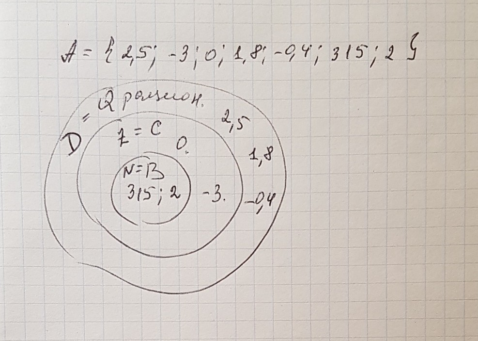 . Дано множество чисел А: А = {2,5; – 3; 0; 1,8 ; - 0,4; 3