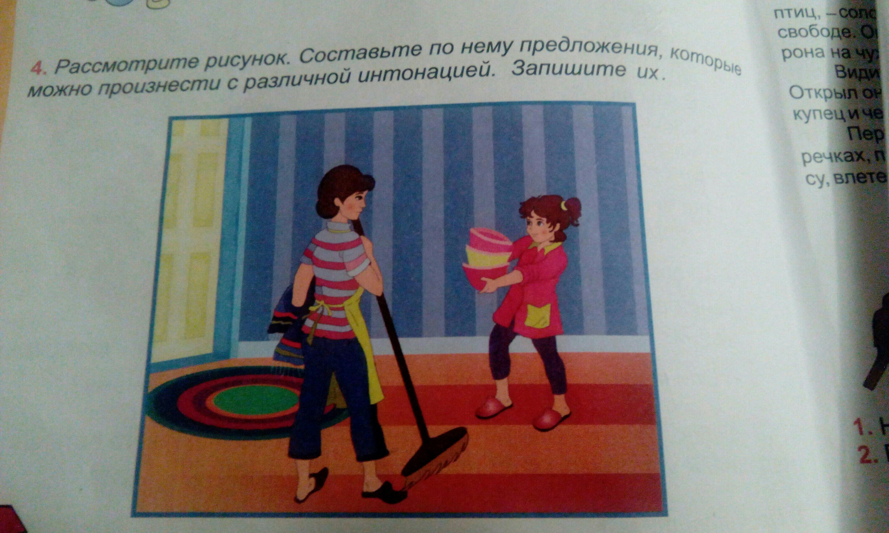 рассмотрите рисунок.составьте по нему предложения,которые можно произности с различной интонацией.запишите их