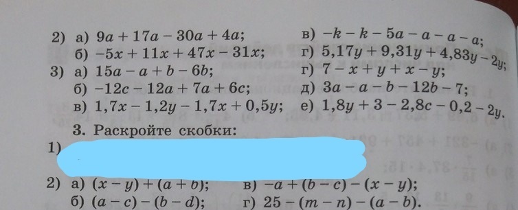 принцип понял? Если перед скобкой стоит минус, то при её раскрытии члены выходят из-под неё с противоположными знаками, а если перед скобкой стоит плюс - то знаки остаются неизменны