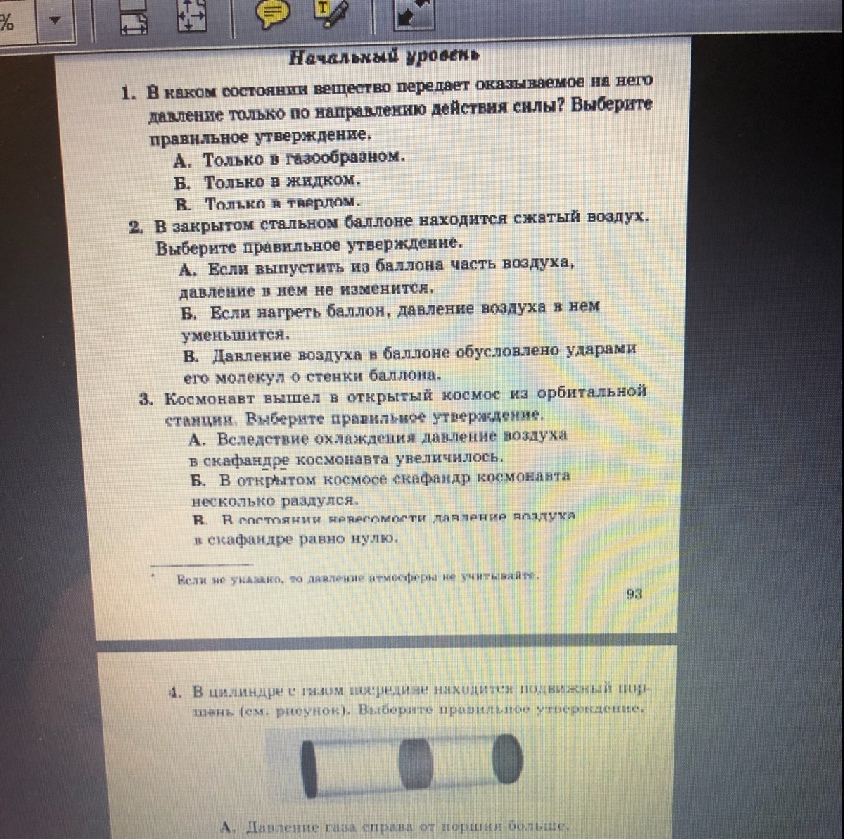 1-В 2-В 3-Б 4 Давление одинаковое слева и справа