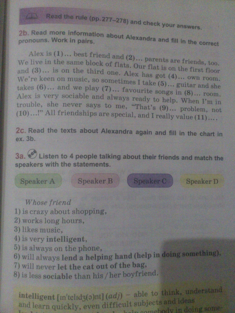 Read more information about alexandra and fill in the correct pronouns.Work in pairs.