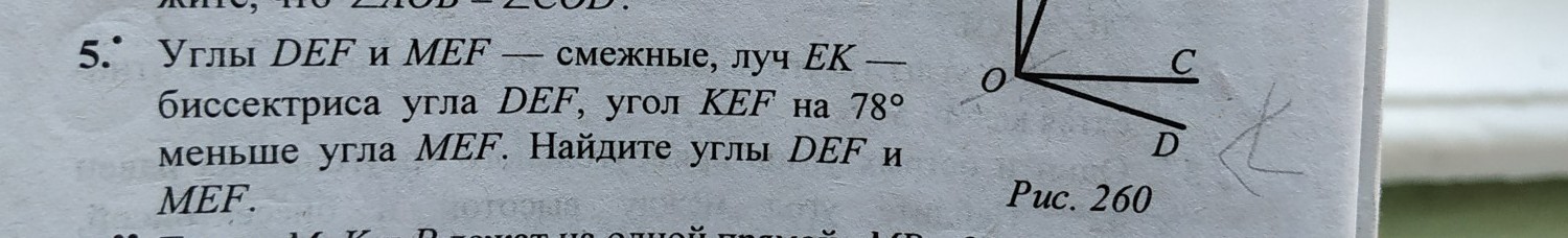 Пусть х-LDEK или LKEF, тогда LMEF—x+78°, LDEF—2x и LDEF+LMEF=2x+(x+78°). Составим уравнение: