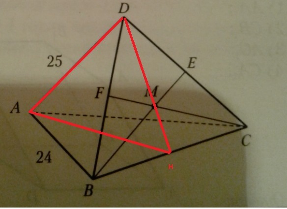 DH^2=BD^2-BH^2=25^2-(24/2)^2=625-144=481; DH≈22