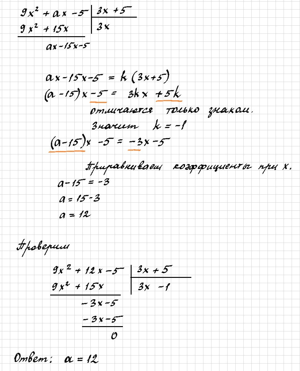Ответ: при а=12 многочлен P(x) делится на многочлен Q(x)