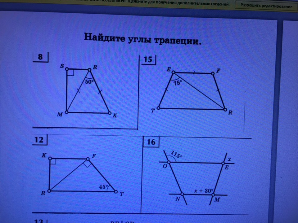 Найдём углы T и R (так как трапеция равнобедренная, они тоже будут равны): (360-(110+110):2=140:2=70 градусов