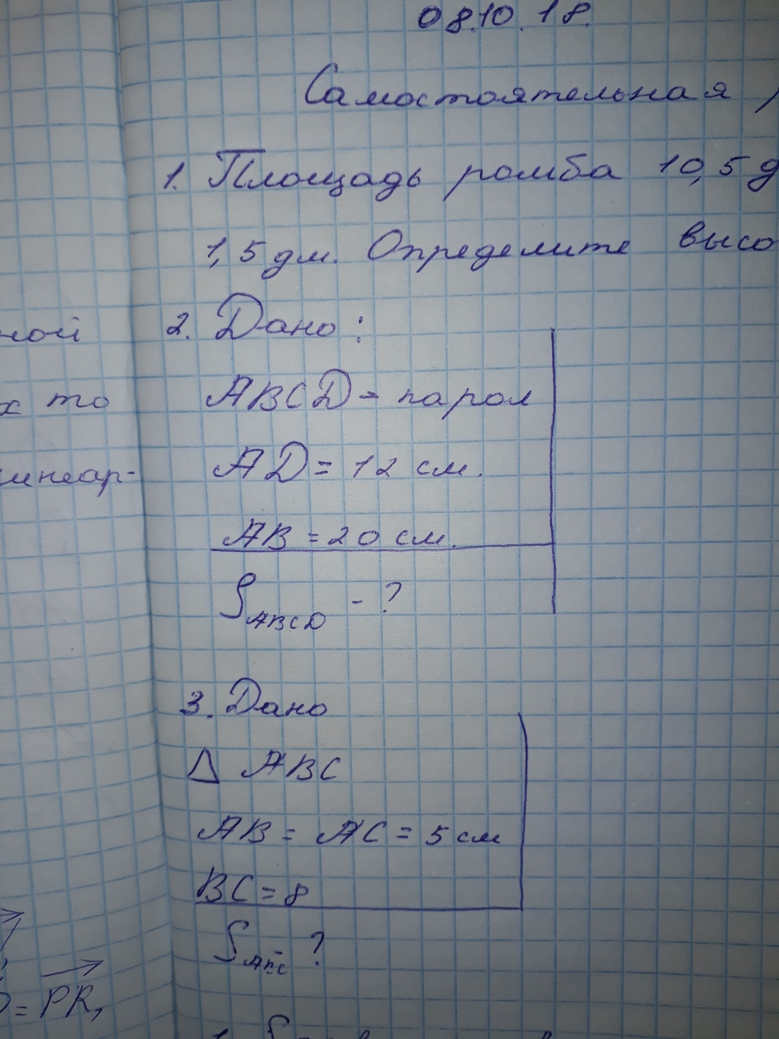 3 зд: BC/2= 4, опускаем высоту из вершины а ан, ан равно по теореме Пифагора высчитываем катет ан из прямоугольного треугольника абн
