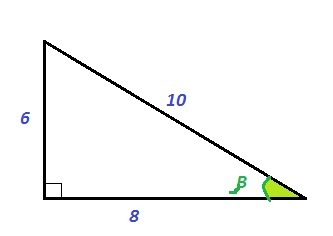 Против меньшей стороны - наименьший угол. Также заметим, что треугольник со сторонами 6, 8, 10 является прямоугольным. Это можно показать, используя теорему Пифагора