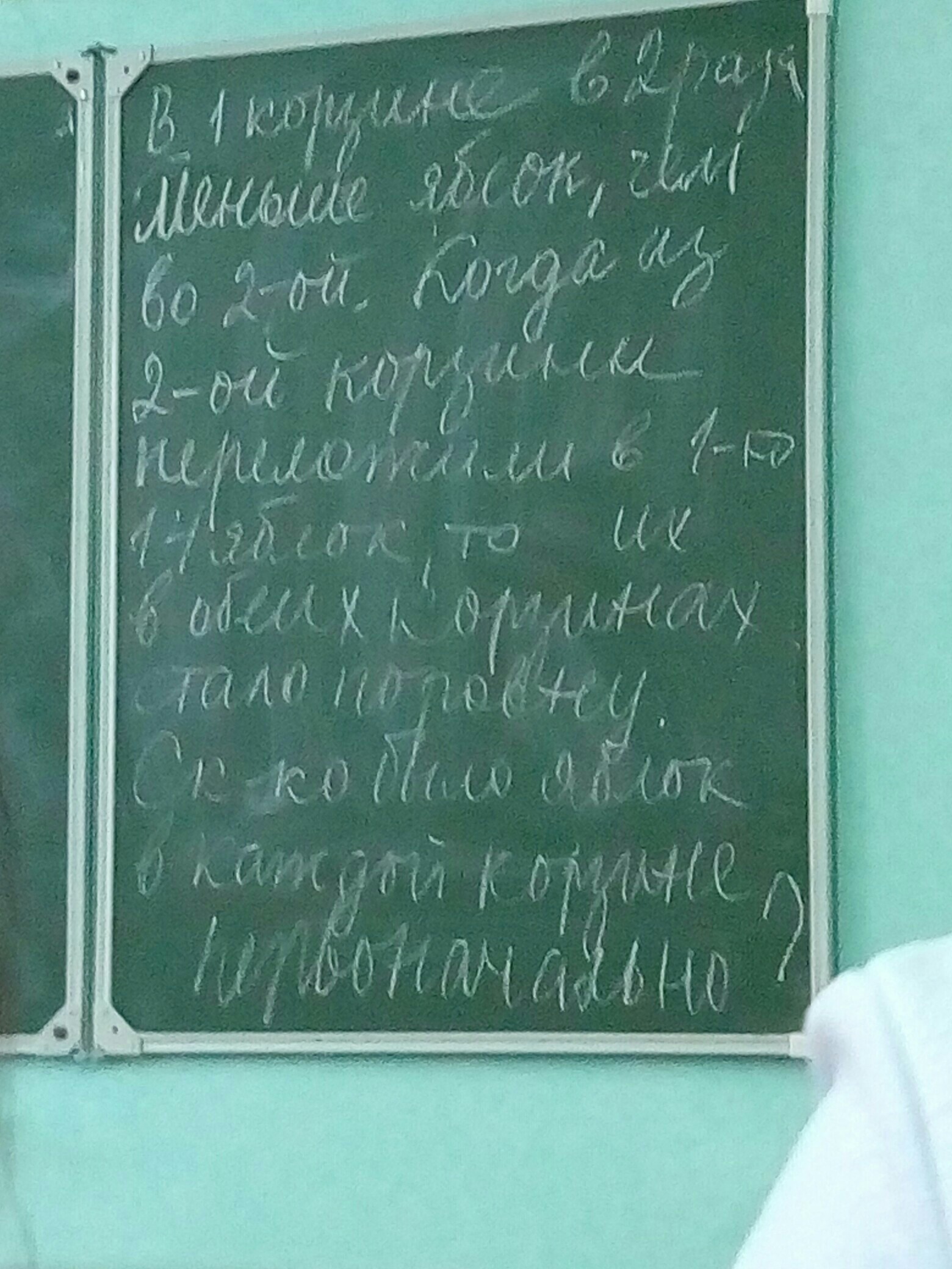 было: x -яблок в 1 корзине, 2x- яблок во 2 корзине. стало: (2x-14)-яблок во 2 корзине, (x+14)-яблок в 1 корзине. уравнение: 2x-14=x+14; 2x-x=14+14; x=28. 28*2=56. Ответ: в 1 корзине первоначально было 28 яблок, во 2 корзине 56 яблок.