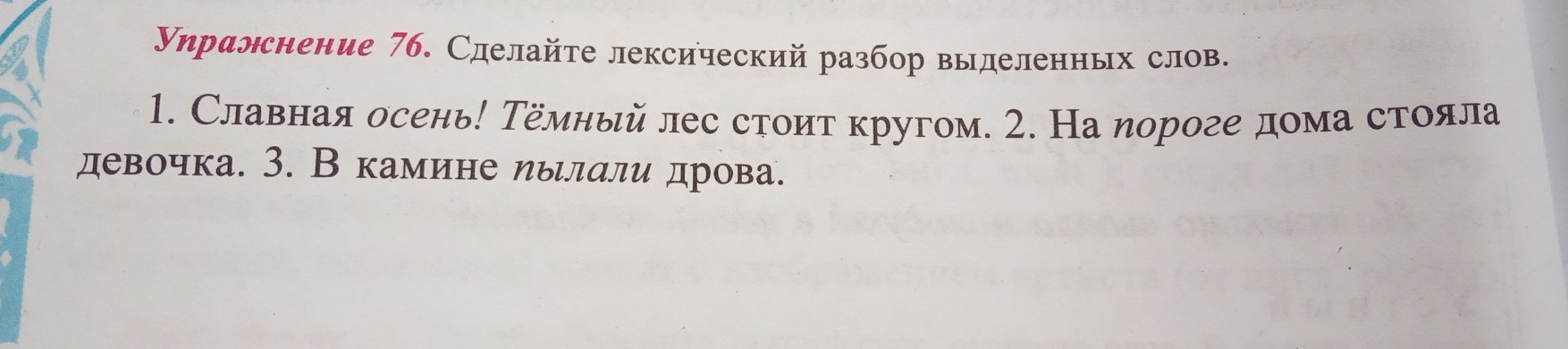 Пылали (дрова) - 1) лексич. знач. - "гореть", 2) прямое значение, 3) семантич. мотивированное, 4) свободное значение, 5)с экспрессивной окраской, 6) двузначное - пылать от стыда, 7) общеупотребительсоке, разговорное, 8) исконно русское слово, 9) синонимы - гореть, антонимы - гасить