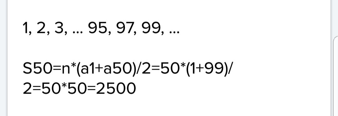 S50=n×(a1+a50)/2=50×(1+99)/2=50×50=2500