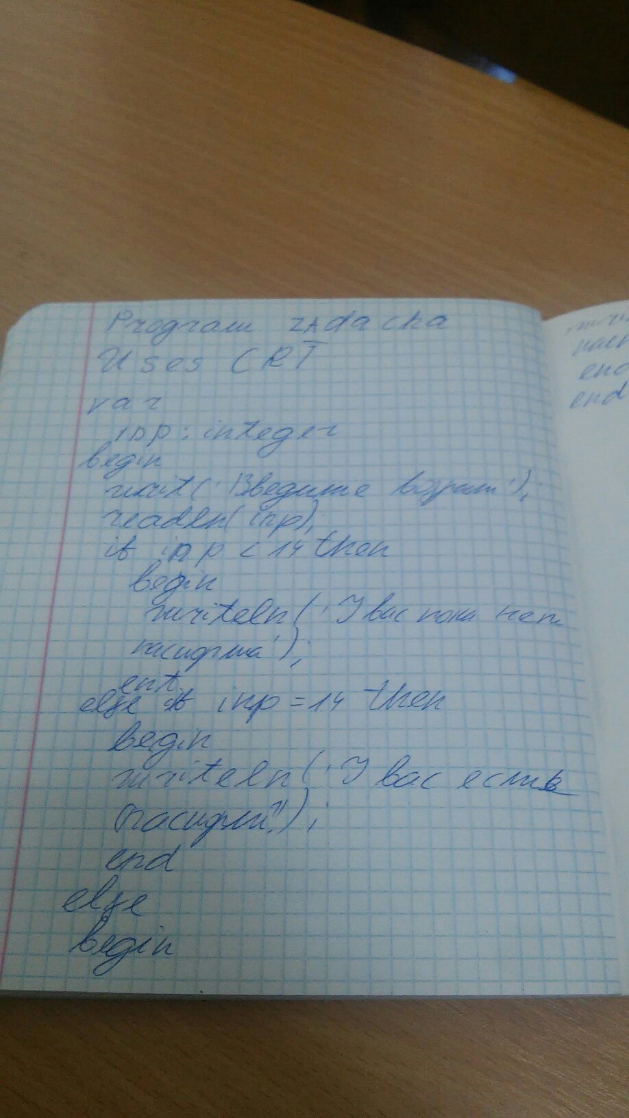 1. Написать программу, которая запрашивает возраст человека, а затем, если возраст меньше 14 лет выводит на экран: «У вас пока нет паспорта», если возраст больше 14 лет выводит на экран: «У вас уже есть паспорт», а если возраст равен 14 годам, спрашивает: «Вы получили паспорт?».