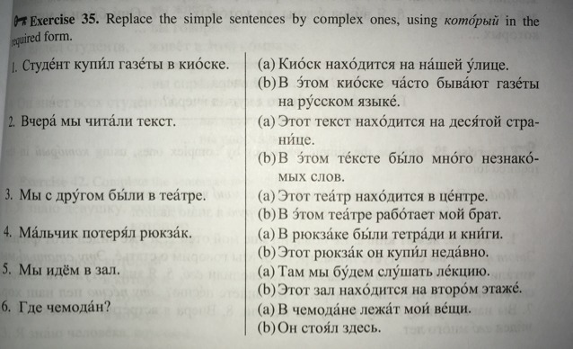 1. Студент купил газеты в киоске, который находится на нашей улице.