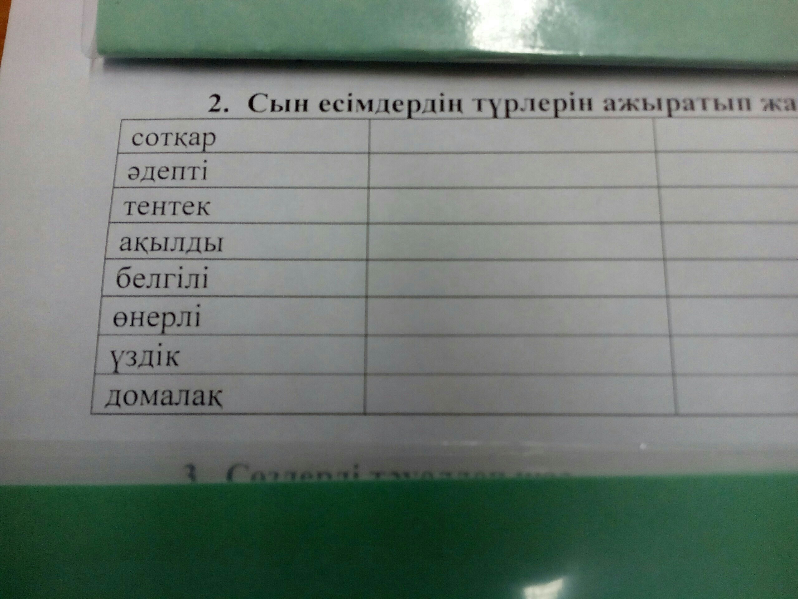 қатыстық сын есімдер:əдепті ақылды белгілі өнерлі