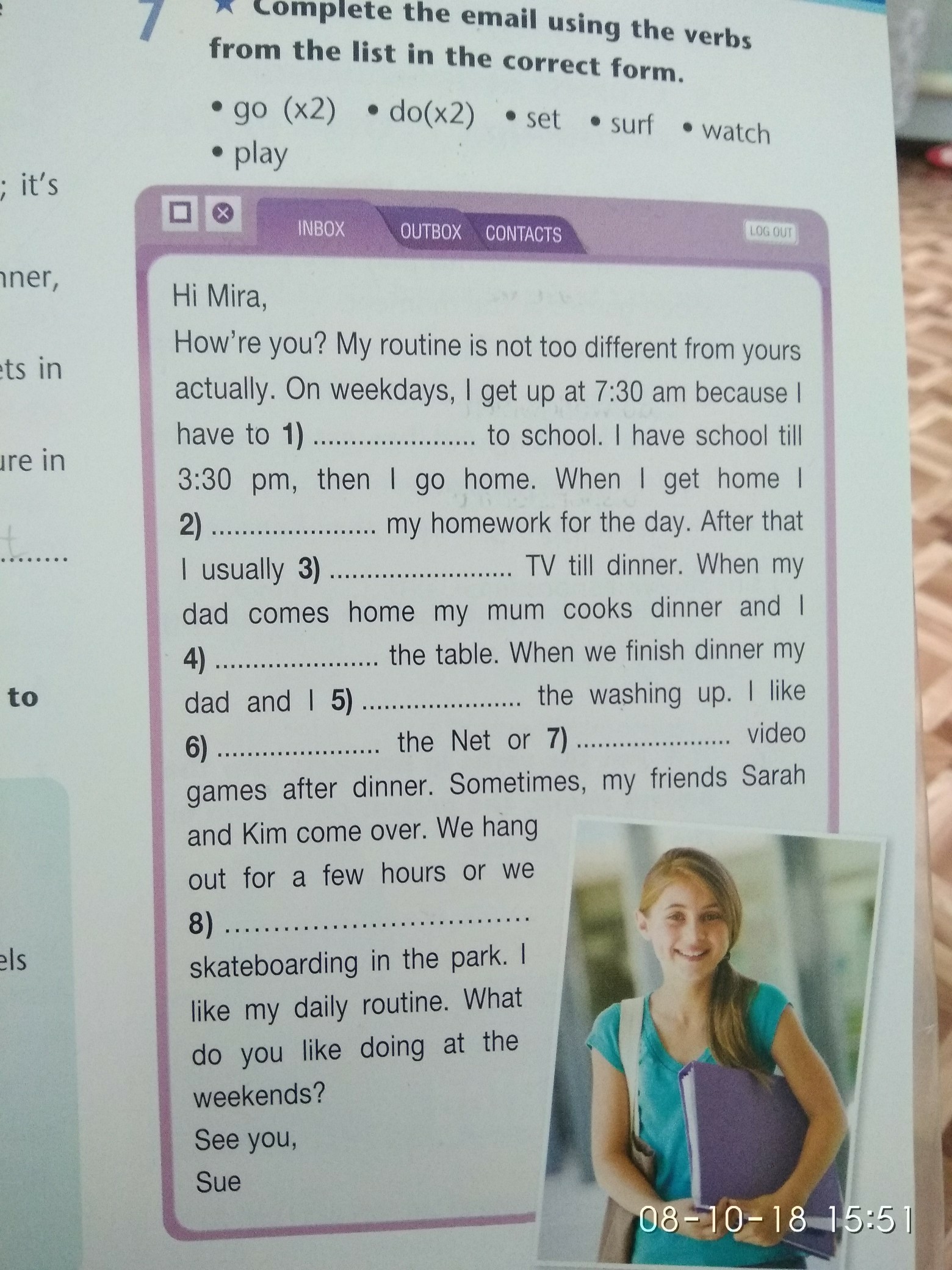 1)go 2)i do 3)watch 4)setting the table 5)незнаю 6)plays 7)watch 8)тоже незнаю. Надеюсь хоть чем-то помог...