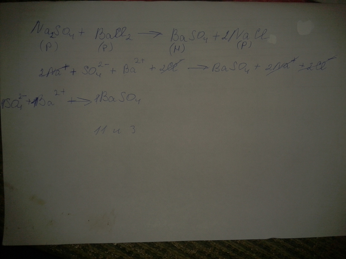 Na2SO4 + BaCl2 =BaSO4 + 2NaCl (+) - заряд, пишется вверху элемента.